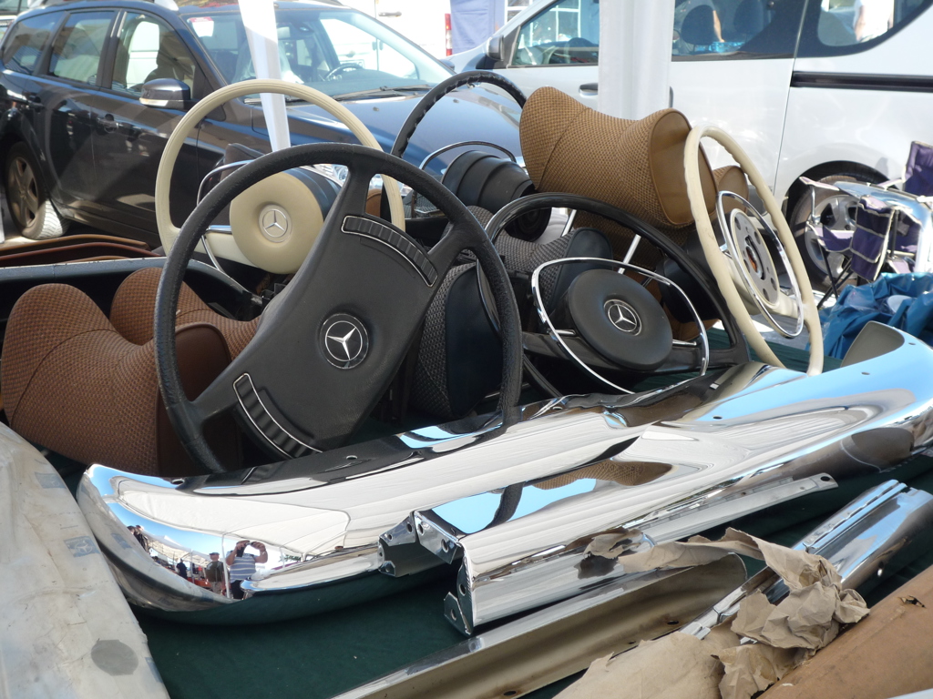 I oktober hvert år går Veterama i Mannheim. Dette er vel den største delemessen i Europa med 260.000 kvm utendørs og 15.000 kvm.innendørs så trenger en tid til å se over alt. Så her blekner vårt ekeberg marked i størrelse. Markedet er også et eldorado for Mercedes-Benz og VW eiere for jeg tipper at 80% av bildelene dreier seg om disse to merkene. Markedet er fritt for nips og kopper og kar og er kun bil og mc deler. Utendørs området er delt opp i 3 kategorier. Bildeler, MC deler eller begge deler. Alt skikkelig Tysk organisert. Utendørs er det stort sett privat personer som selger mens innedørs finner en firmaer som Niemöller sammen med mange fler.
