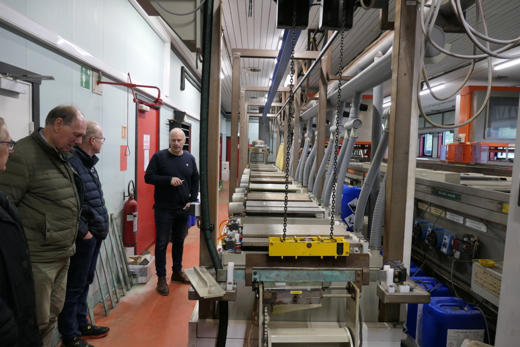 Det ble et riktig hyggelig og interessant klubbtreff på Gundersen Galvano Vi ble tatt i mot av Dag Erik som fortalte om de ulike prosessene de kan tilby innen overflatebehandling, både på stål og aluminium.